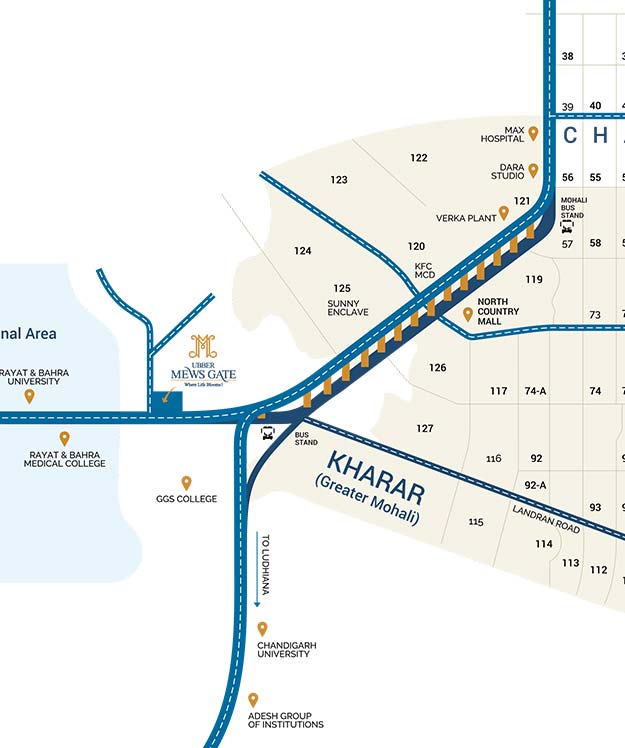 Ubber Mews Gate offers Near Possession Luxurious 3 BHK Independent Homes & penthouses at a most Prime Location on Kharar Exit Corridor, Chandigarh-Ropar Highway (NH21), Kharar (Greater Mohali) and just 5 minutes from Chandigarh. At Mews Gate we’ve taken contemporary living to a whole new level, providing an environment that’s perfectly suited to the modern, family lifestyle.